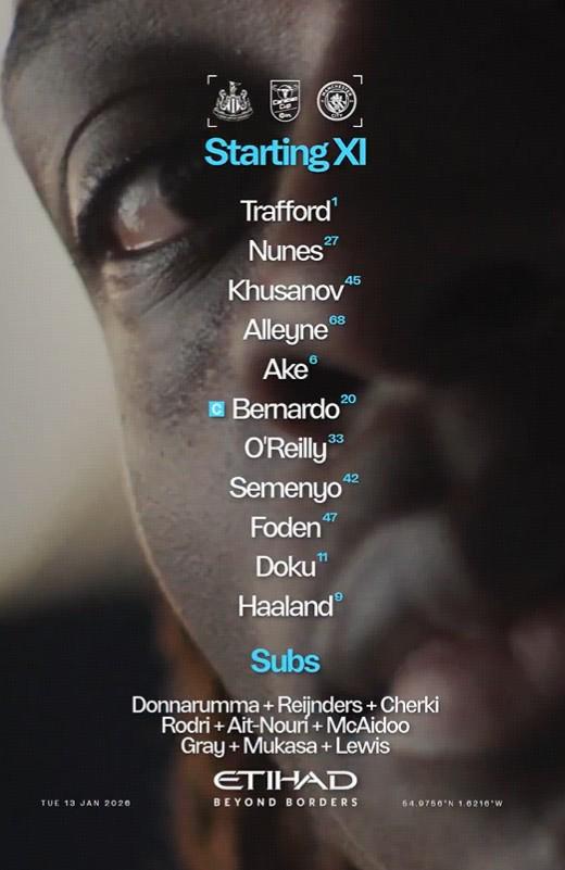 北京时间1月14日4:00,英联杯半决赛首回合,曼城作客圣詹姆斯公园球场挑战纽卡斯尔联,本场主裁判为卡瓦纳,赛前双方首发出炉。