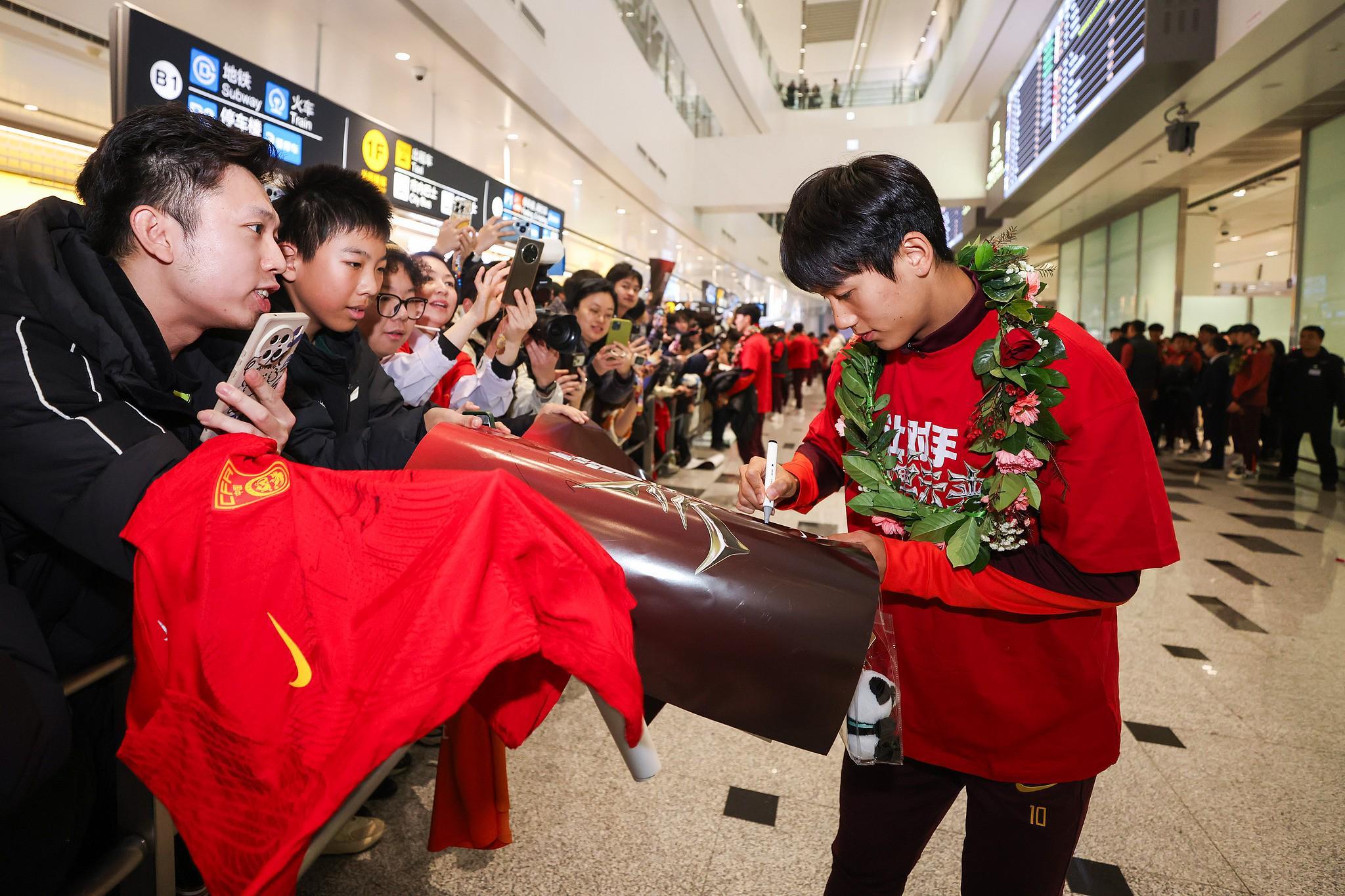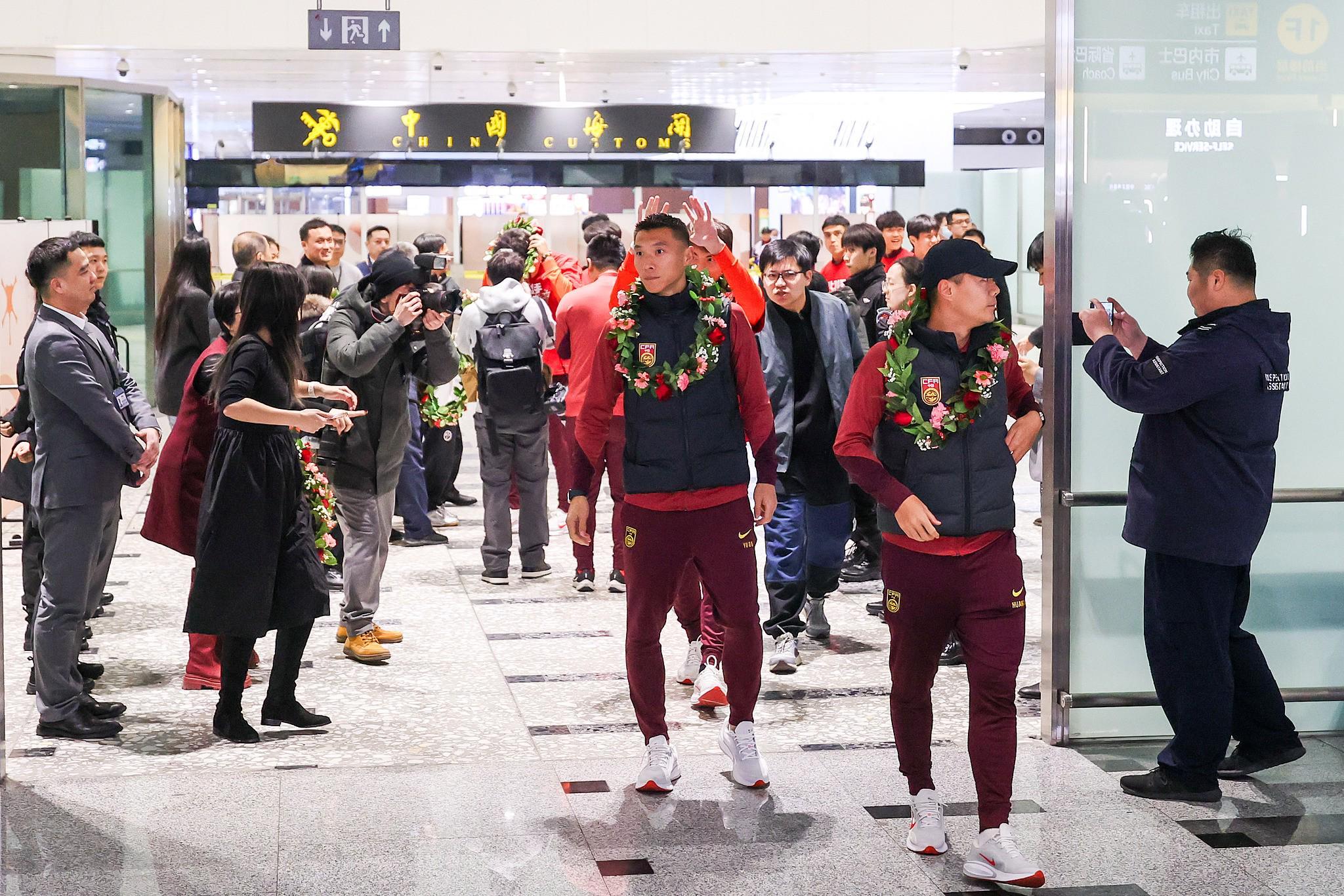 亚博体育官网-高清图集:U23国足凯旋,众多球迷现场接机