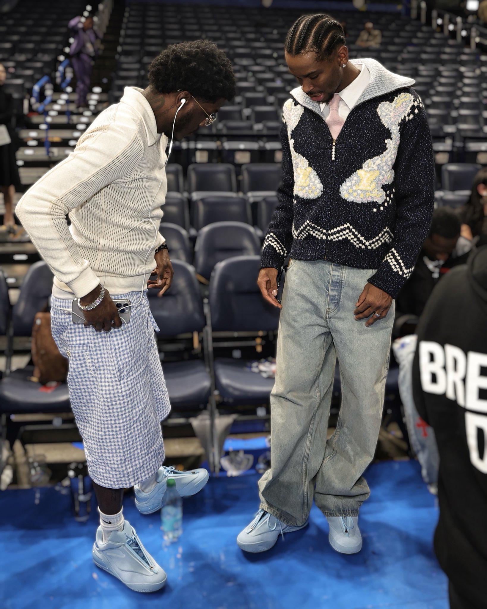 赛后,NBA官方晒出亚历山大与说唱歌手利尔·亚蒂的同框照,从图片中可以看出亚历山大为利尔·亚蒂送出了自己的签名球鞋。